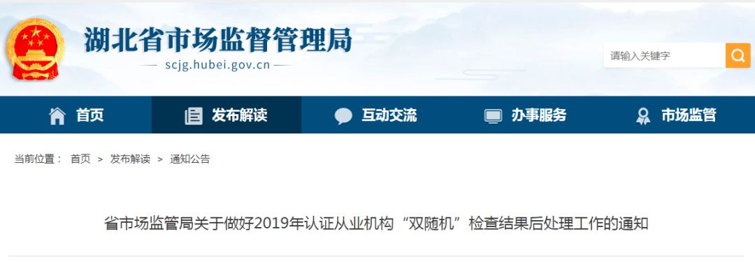 省市场监管局关于做好2019年认证从业机构“双随机”检查结果后处理工作的通知