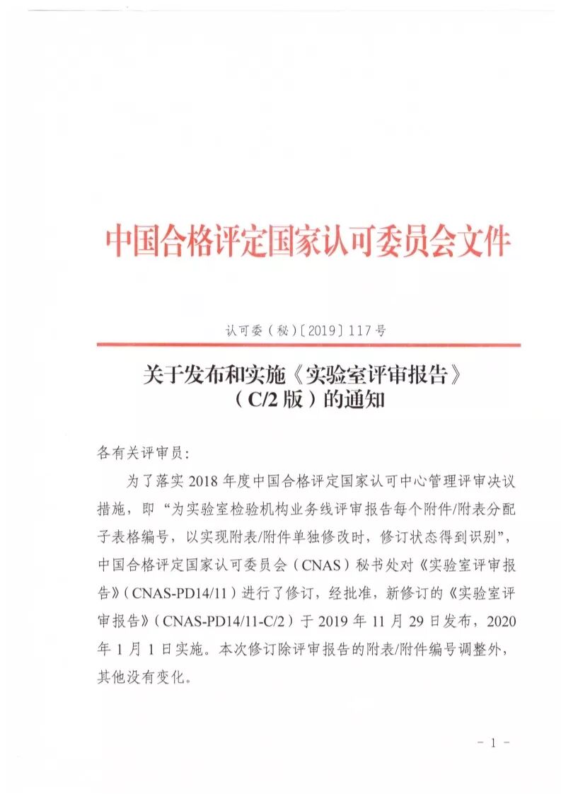 关于发布和实施新修订的《实验室评审报告》(C2版)的通知